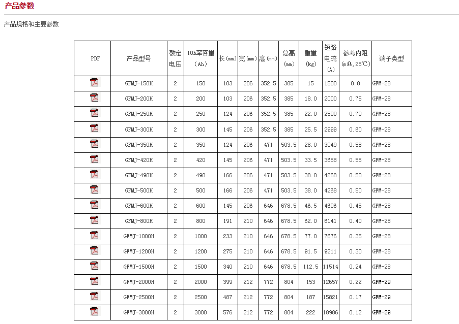 3. 設計浮充壽命:在25℃±5℃環境下,設計浮充壽命為20年;
