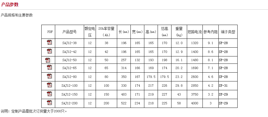 4. 循環壽命:在標準使用條件下, 25%DOD循環2000次;